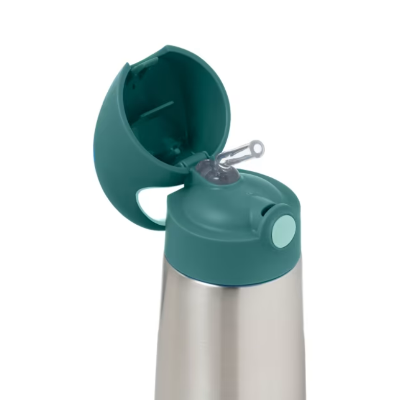 We've redefined cool with our new insulated drink bottle. Our newest drink bottle has insulating super powers! The double walled stainless steel keeps liquids cool for up to 8 hours and warm for up to 6, so now your little one can stay hydrated whatever the weather. Complete with carry handle and push button opening, designed specifically for little hands. Clean modern design and big kid aesthetic. Available in six fab b.box colours. Kids love our easy drinking silicone straw top. Parents love no leaks in the bag (when the lid is closed). Replacement straw packs available, sold separately. When using to keep liquids warm - for best performance fill the stainless steel base with hot water for a few minutes to warm it before pouring water out - and filling with warm liquids.
