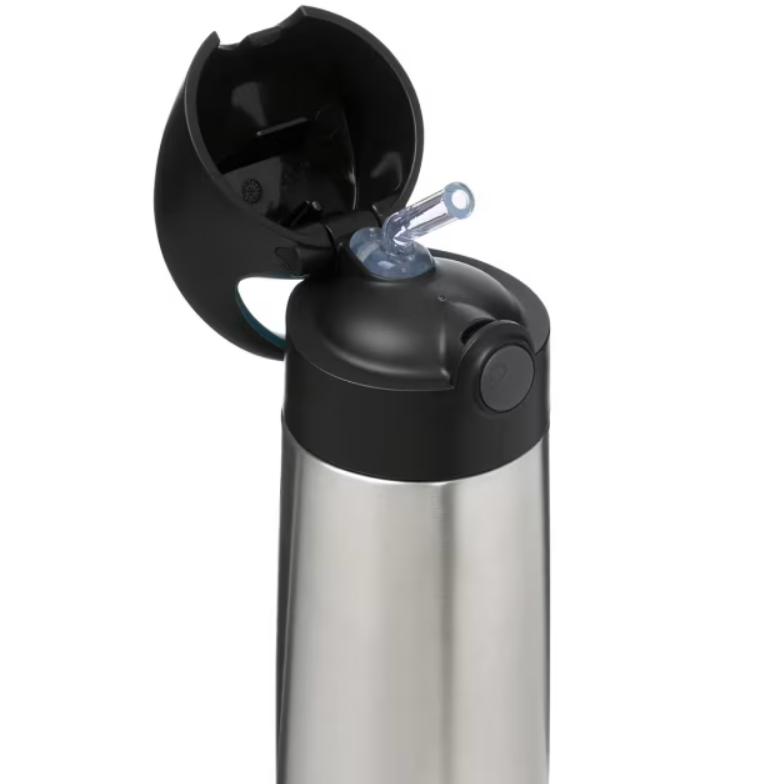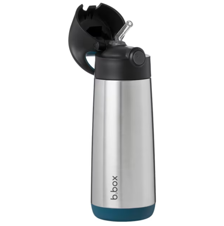 The B.BOX Insulated Drink Bottle in Night Vision keeps drinks cold for up to 15 hours. Made from premium stainless steel with a 500ml capacity, it features an easy-open spout and carry handle. Perfect for school, sports, and outdoor adventures.