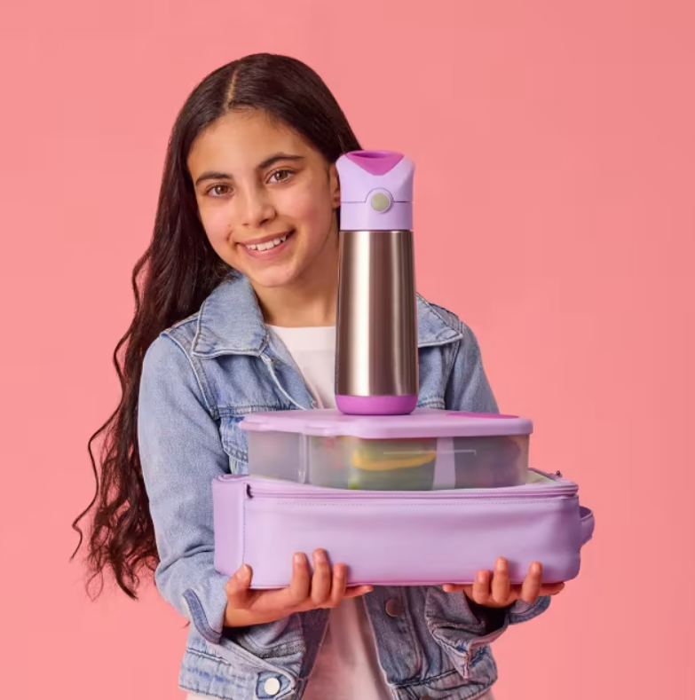 The B.BOX Insulated Drink Bottle in Sugar Plum keeps drinks cold for up to 15 hours. Made from premium stainless steel with a 500ml capacity, it features an easy-open spout and carry handle. Perfect for school, sports, and outdoor adventures.