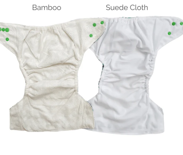 When you make your selection between suede and bamboo this is the nappy lining fabric, the inner of the nappy that goes against the skin, NOT the insert.