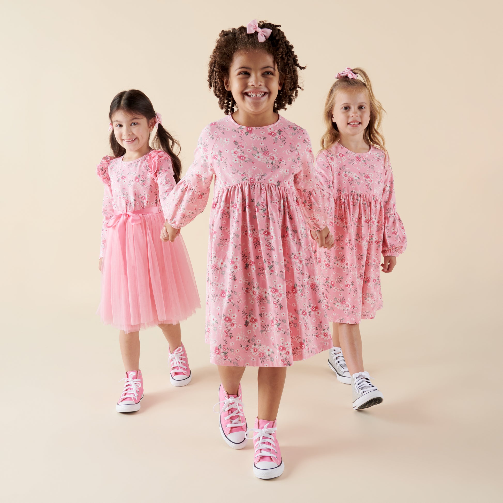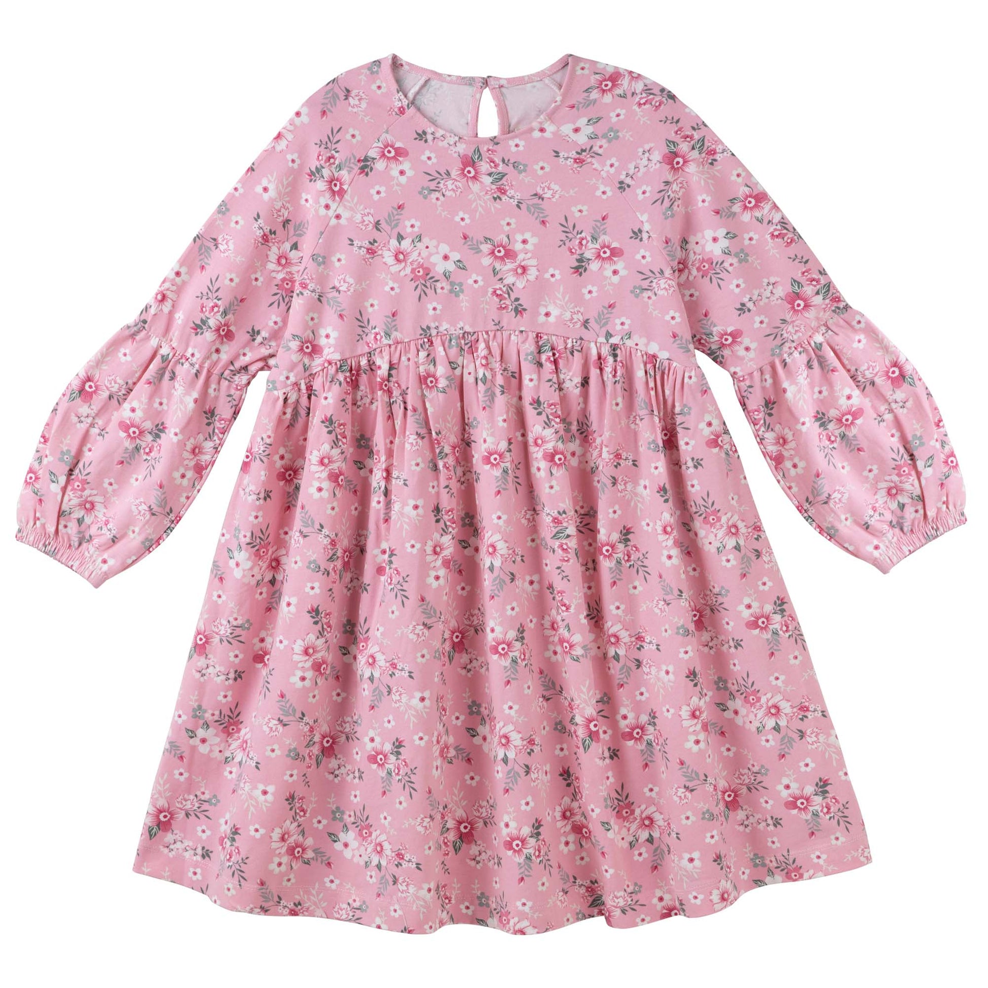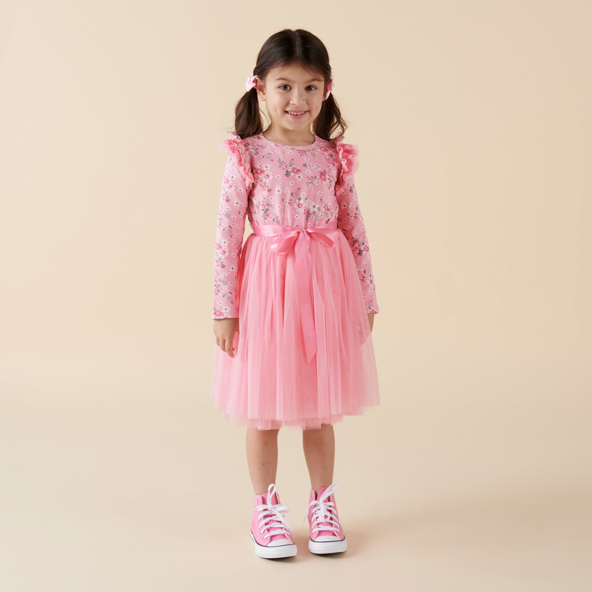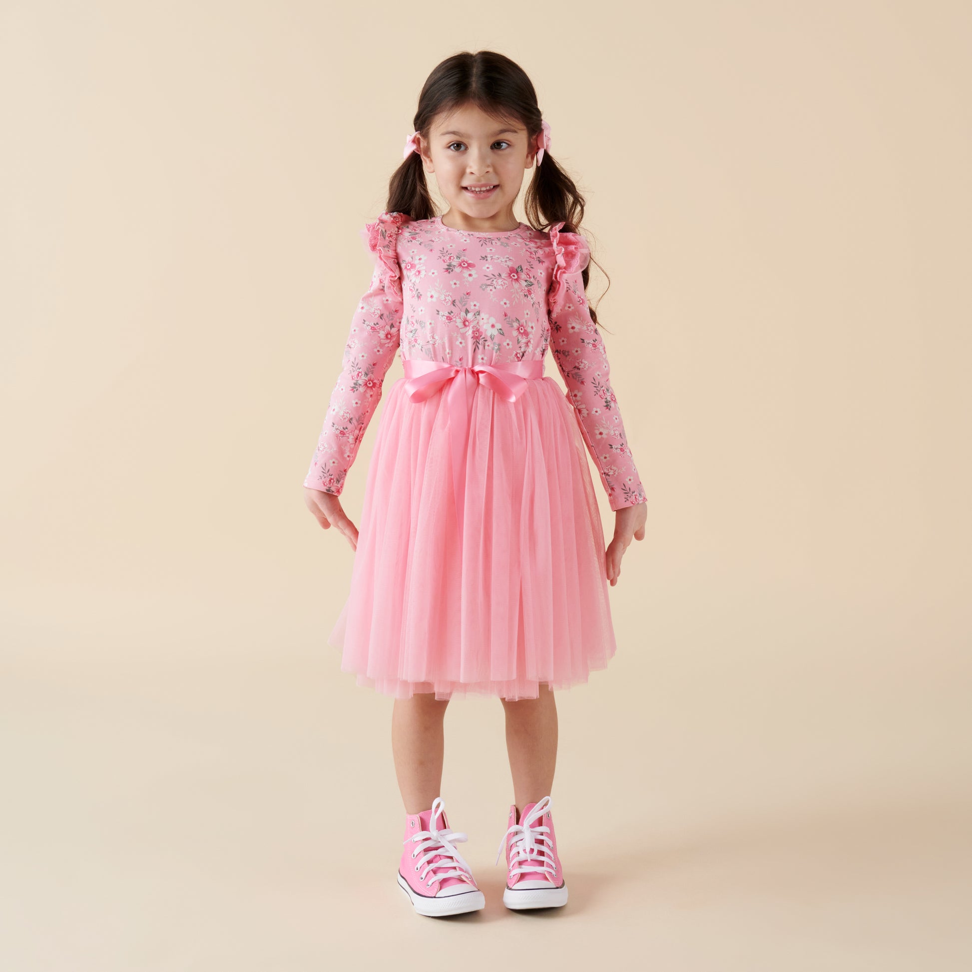 Designer Kidz | Millie Floral Long Sleeve Poodle Sleeve Dress | Pink