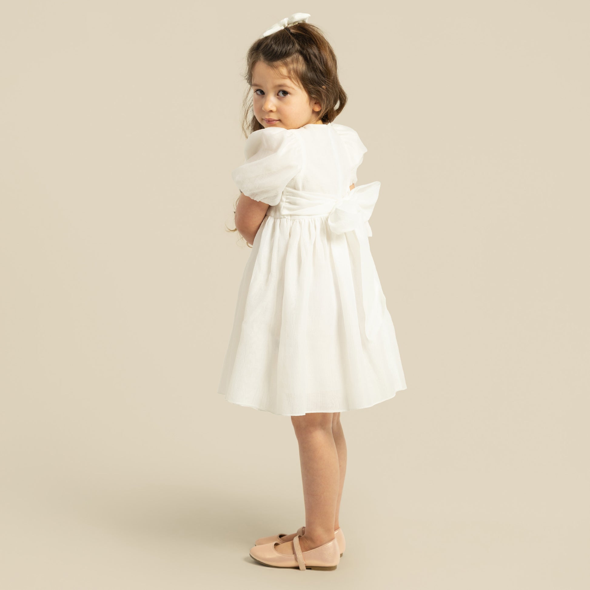 Designer Kidz | Noa Puff Sleeve Bow Back Dress | Ivory
