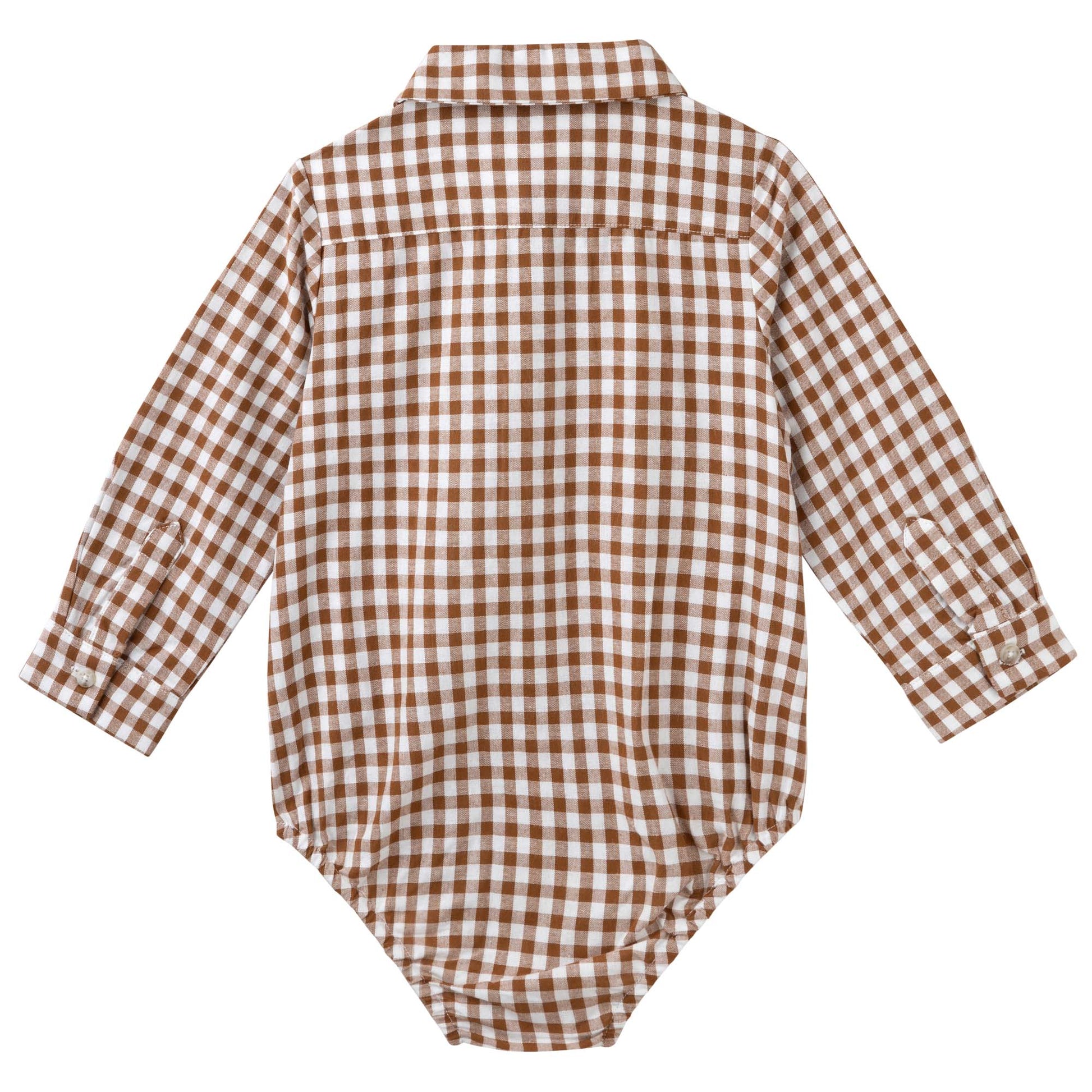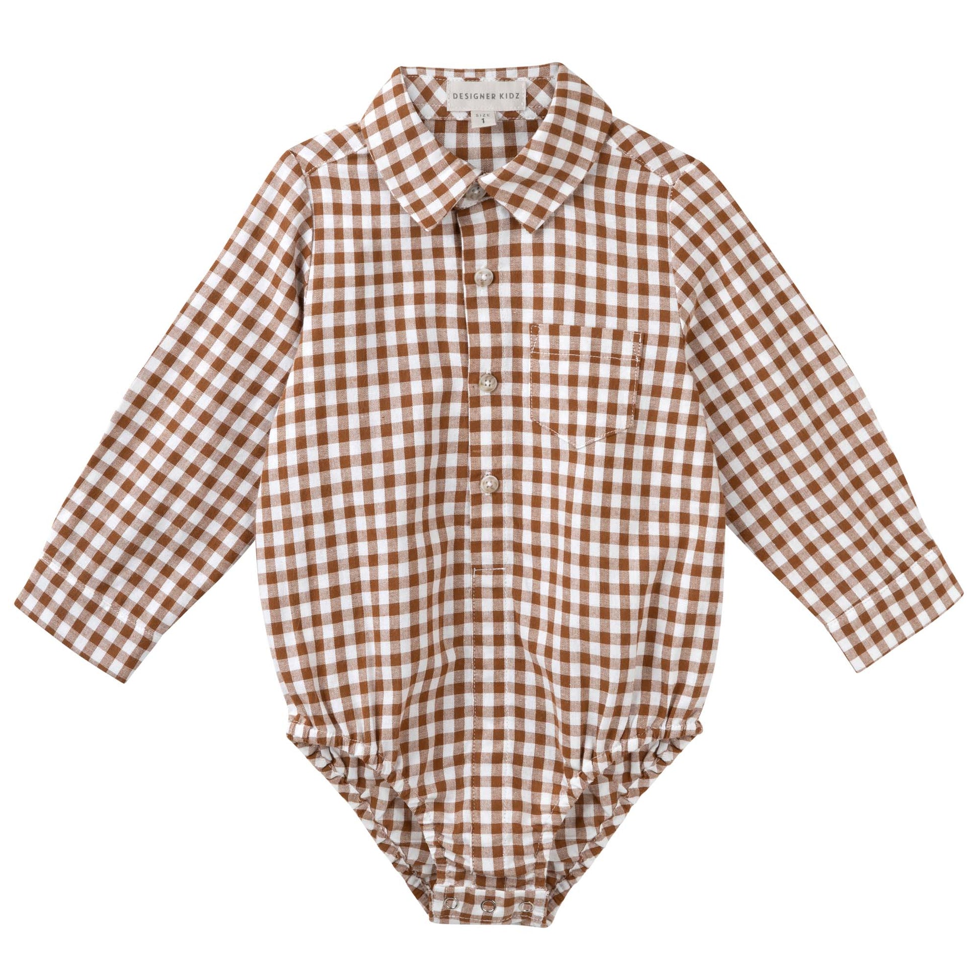 Designer Kidz | Oliver Long Sleeved Gingham Button Romper | Cocoa Gingham