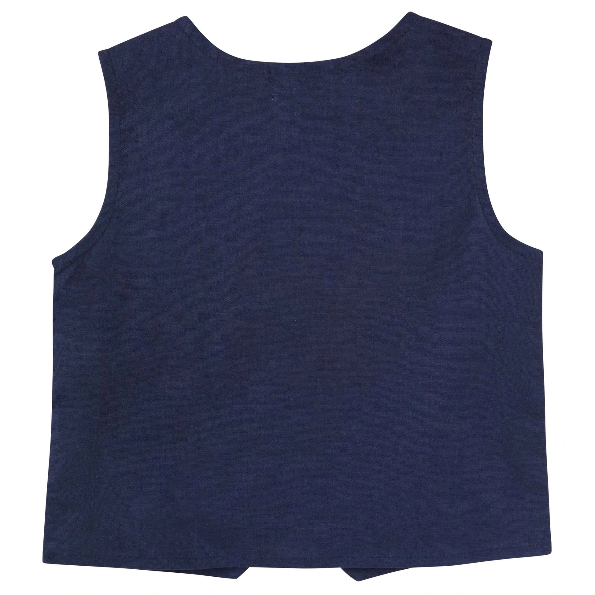 A dapper vest for your pint-sized prince! The Toby Linen Vest features a tailored with front button detailing. Perfect for suiting up your little trendy man.