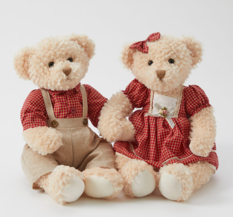Edward is a sweet and hard-working farmer! He wears a cute plaid button down with brown overalls. This little bear is made from premium quality plush faux fur fabric. Wearing matching outfits with another bear named Ethel, these two are inseparable—so get them together so they don’t have to separate!