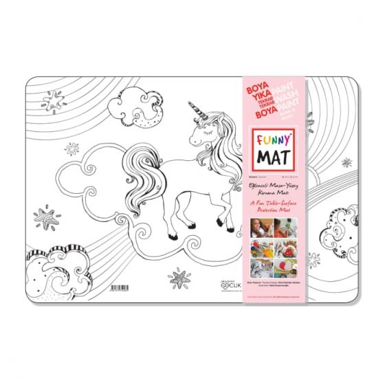 Funny Mat is used as a table and surface protector for various activities. You can dine, paint, shape the clay, and play dough on it. It can also be used as a study mat. Funny Mat is an activity material by itself. You can colour the drawings on the mat with water-based felt-tip pens as desired. When you hold Funny Mat under running water, the paint will come off, and you will be able to paint it many times in different colours.