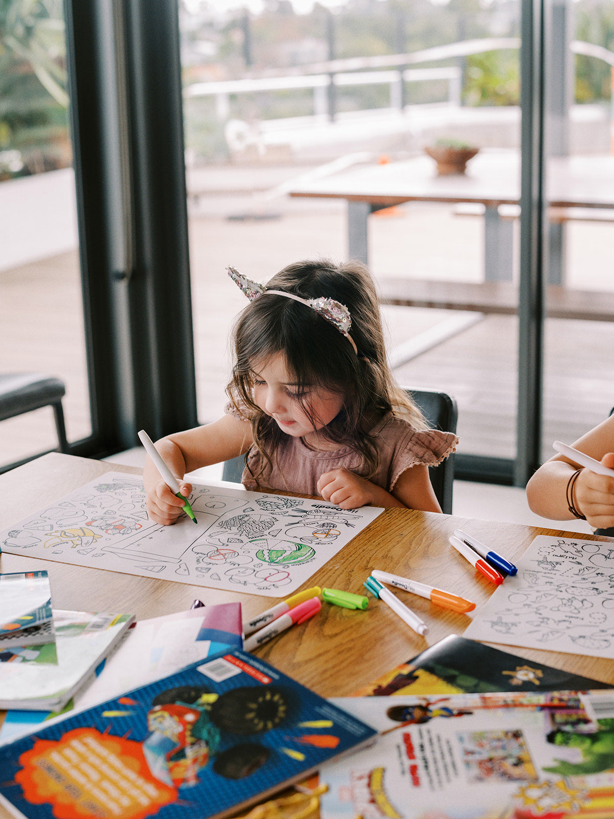 Each mat is thoughtfully designed and features an educational theme (ie letters, farm animals, numbers) so your curious kids can learn as they colour!