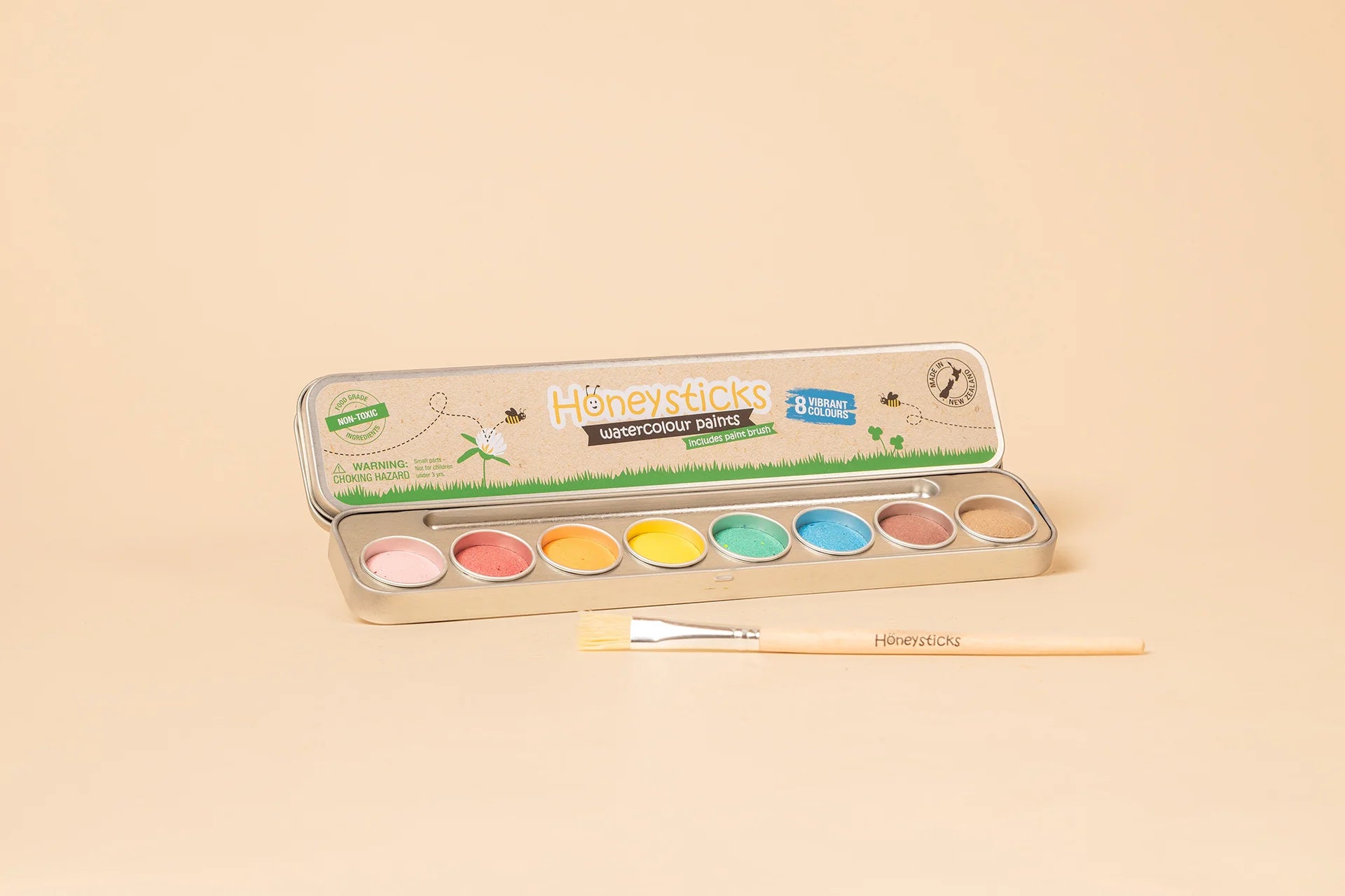 - Perfect eco-friendly gift set: Beautifully packaged in a recyclable metal tin, Honeysticks Watercolour Paint Set will make a thoughtful gift for the little artist in your life (ages 3+).