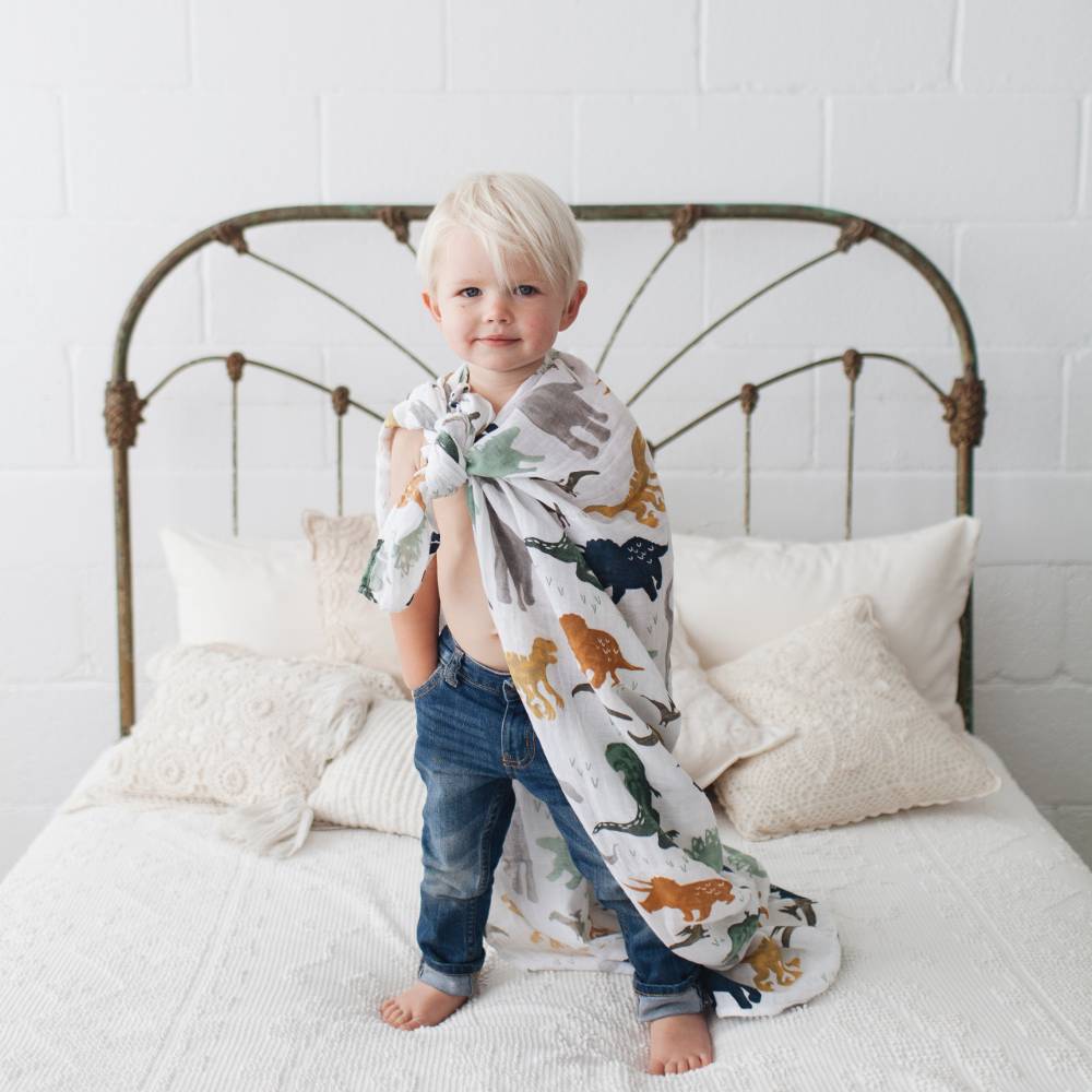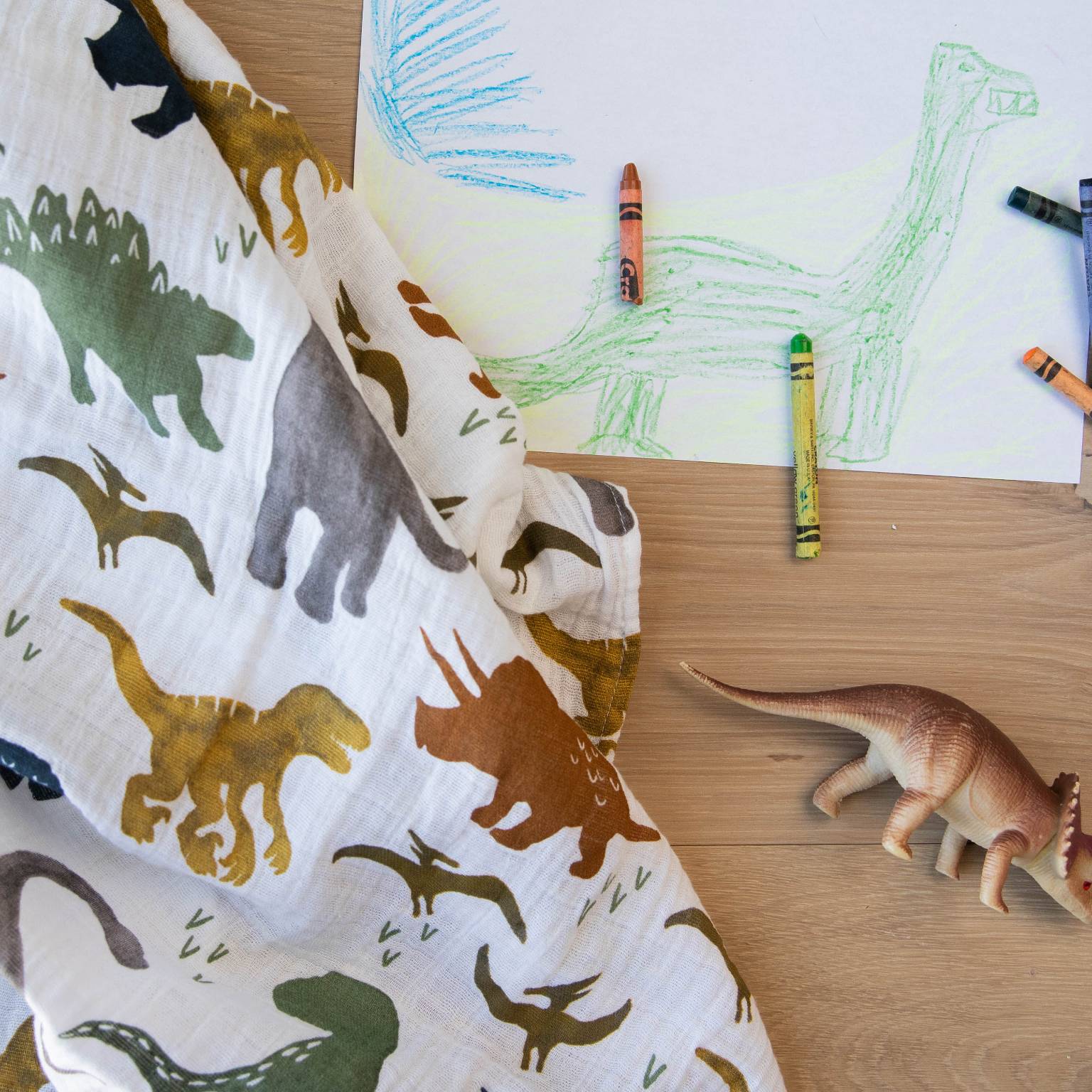 Little Unicorn Single Cotton Muslin Swaddle - Dino Friends
