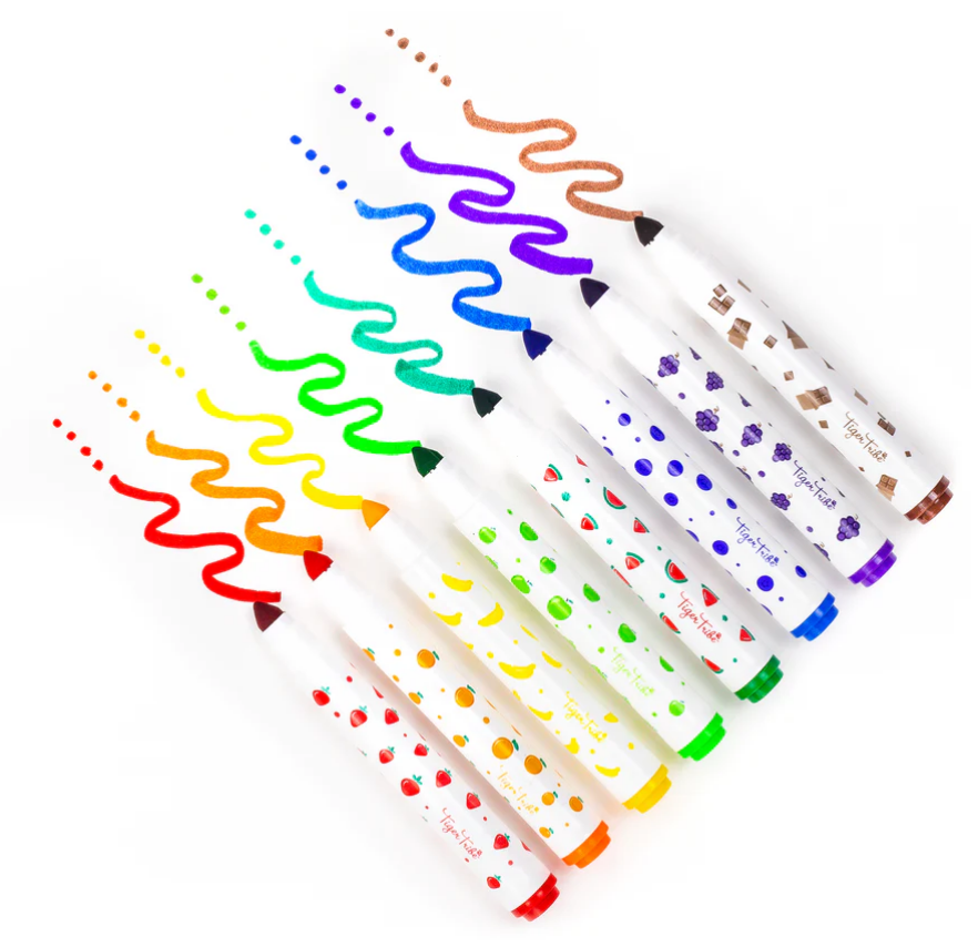 Scented Markers are fruity (and chocolatey) and fun! Grape, watermelon and banana YUM! Though honestly chocolate and strawberry is our favourite combination. These deliciously fragrant coloured markers will add an extra sensory dimension to all creative projects.
