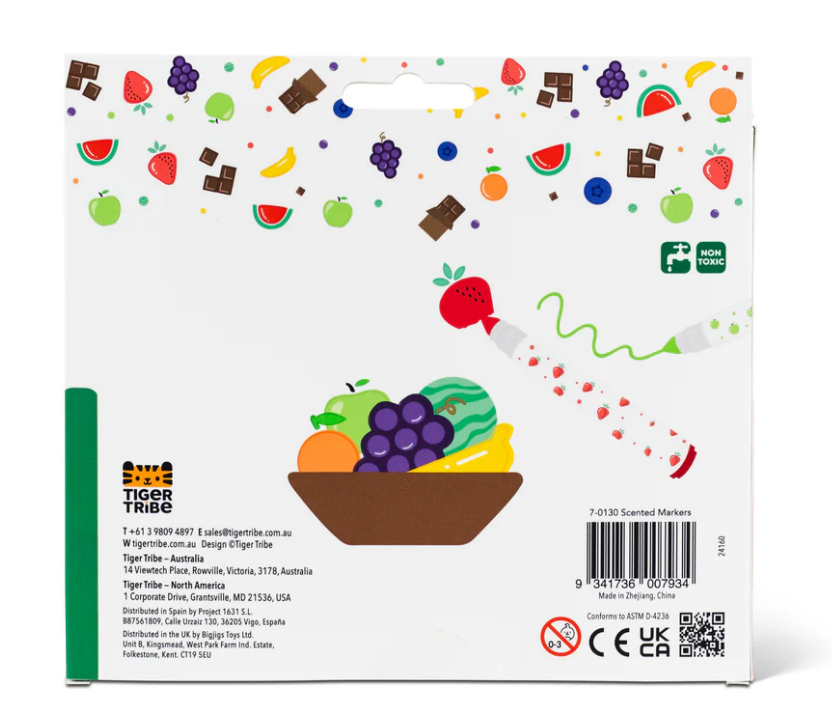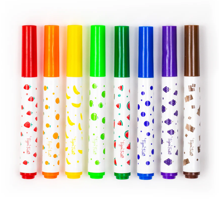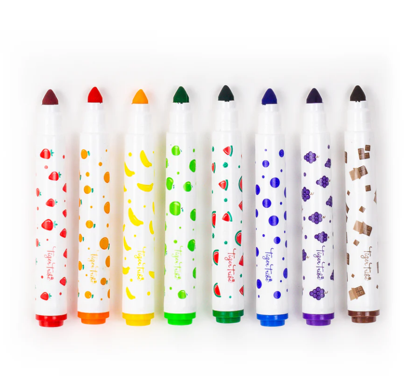 Perfect for kids who want to make something super sweet and bright, each marker barrel is decorated with charming little food icons that match the scent.